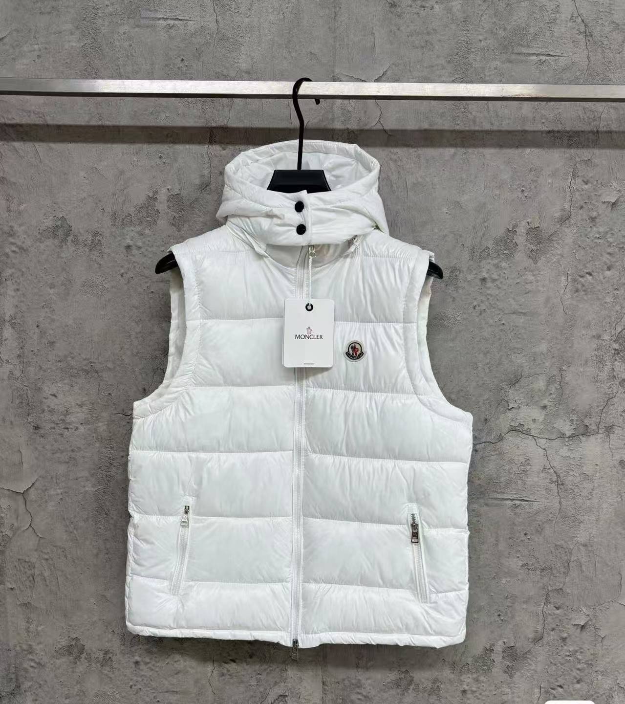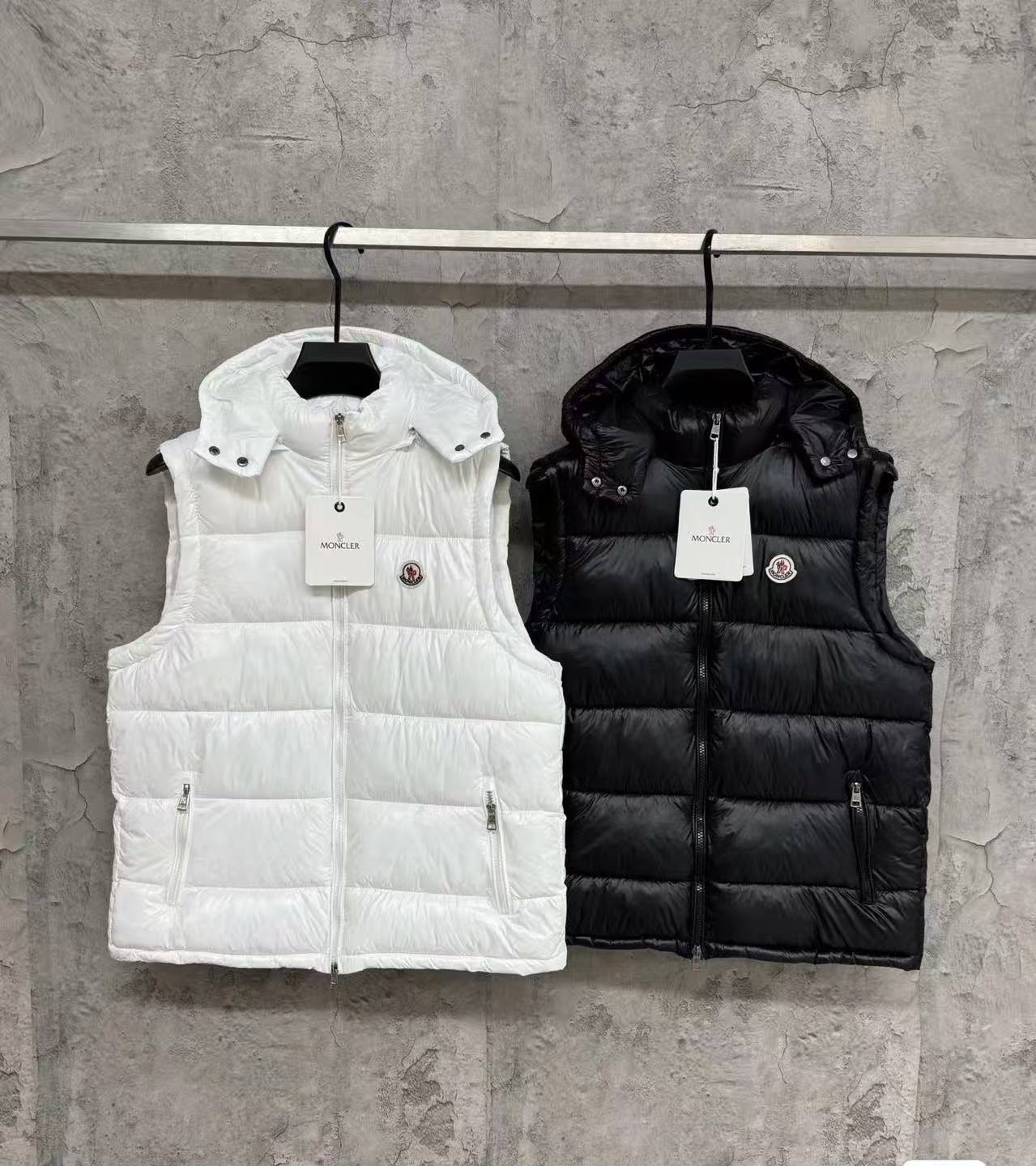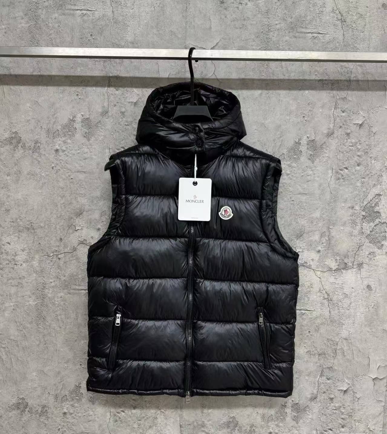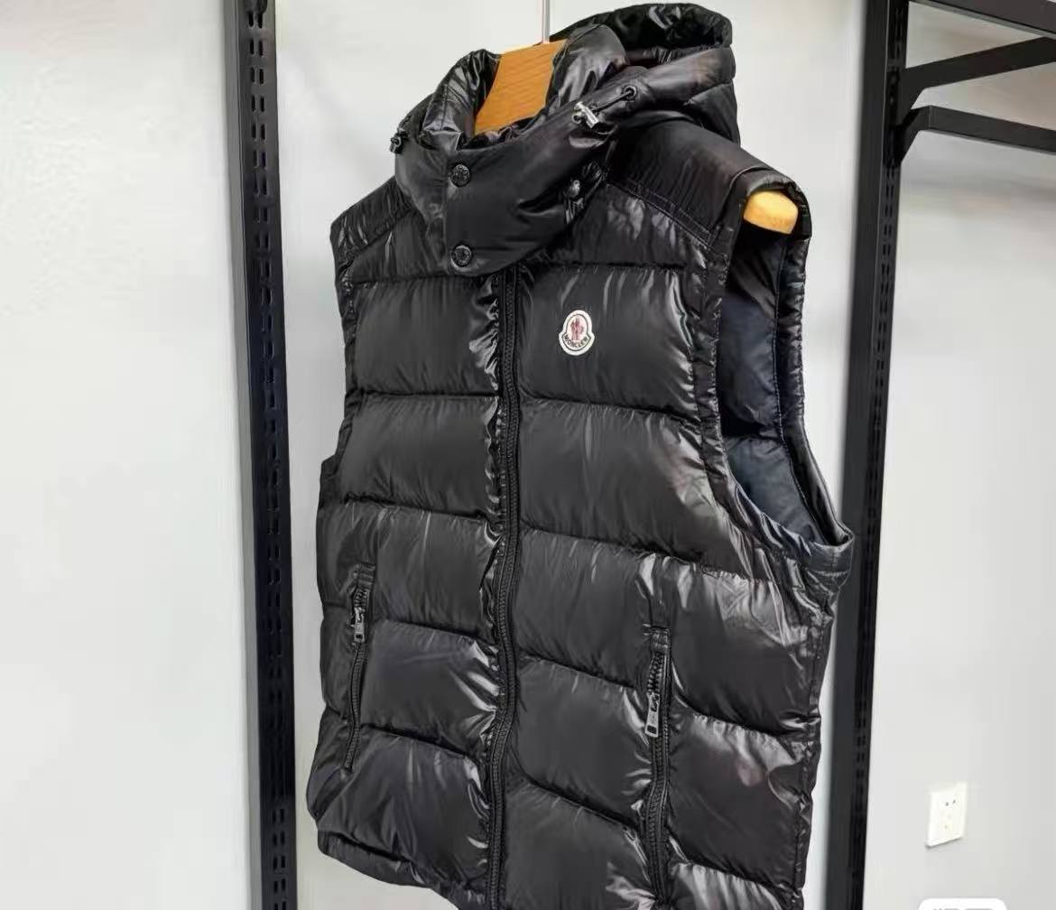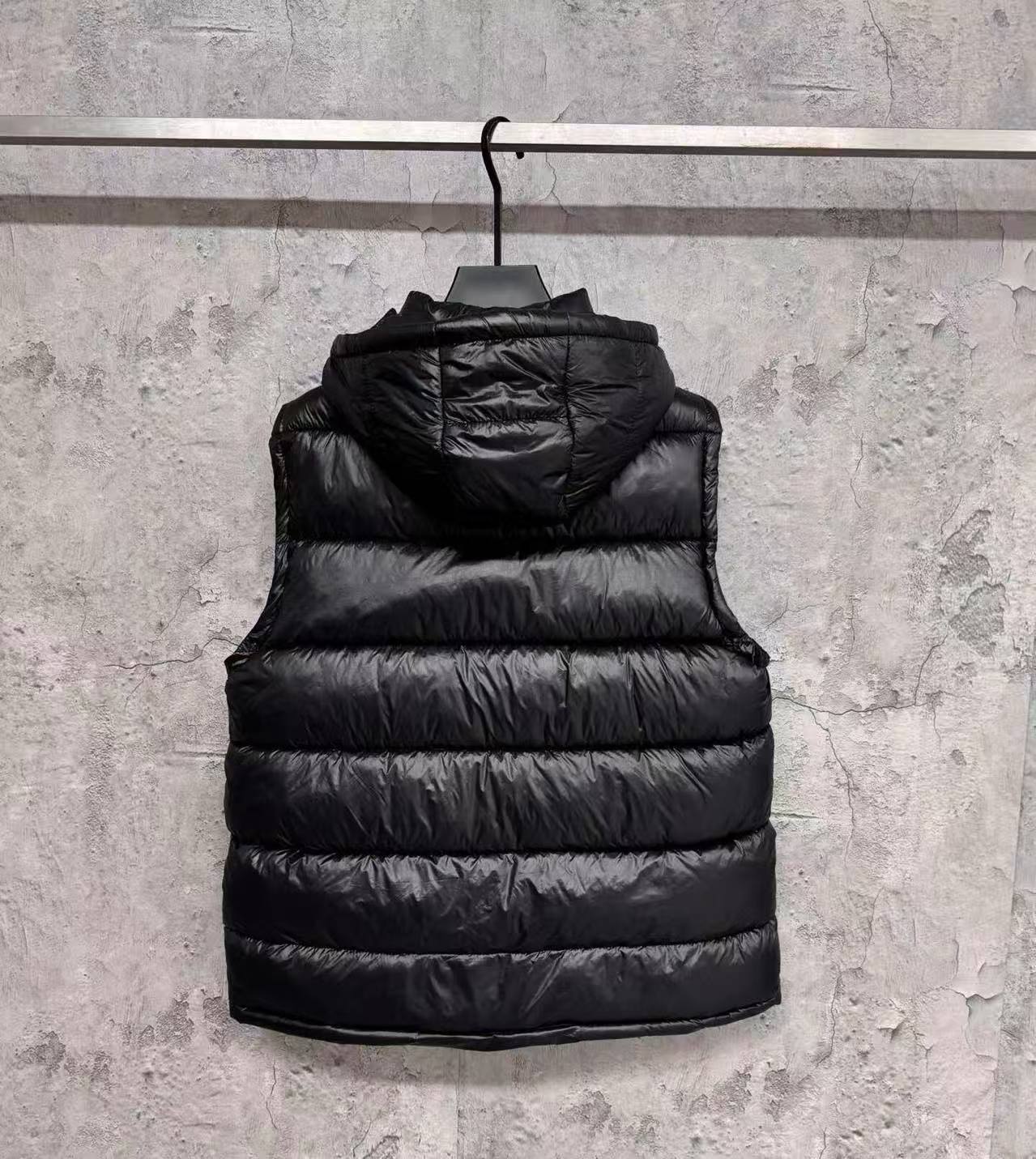 Moncler Black Hooded Down Vest – Shiny Quilted Warm Sleeveless Gilet
