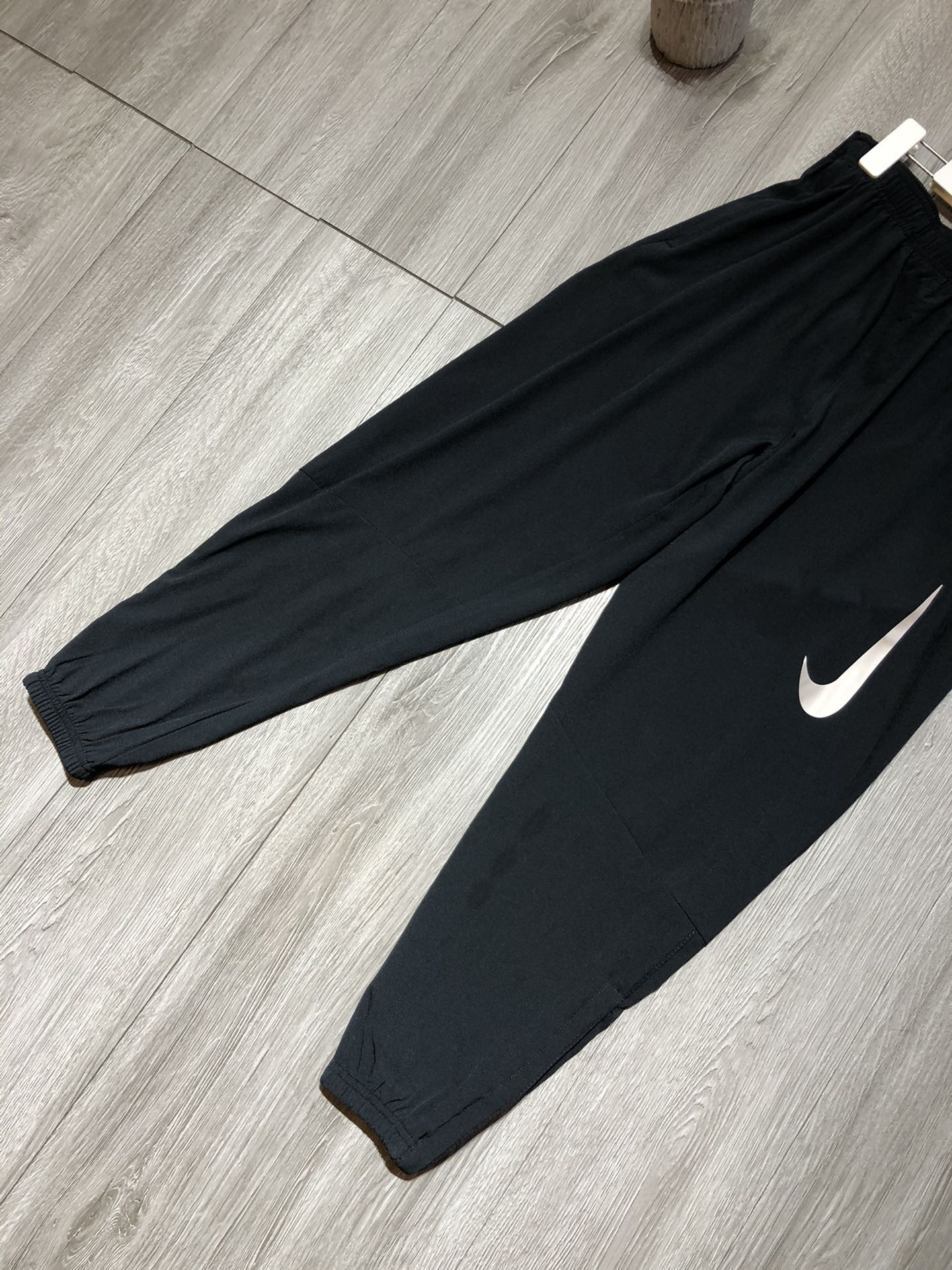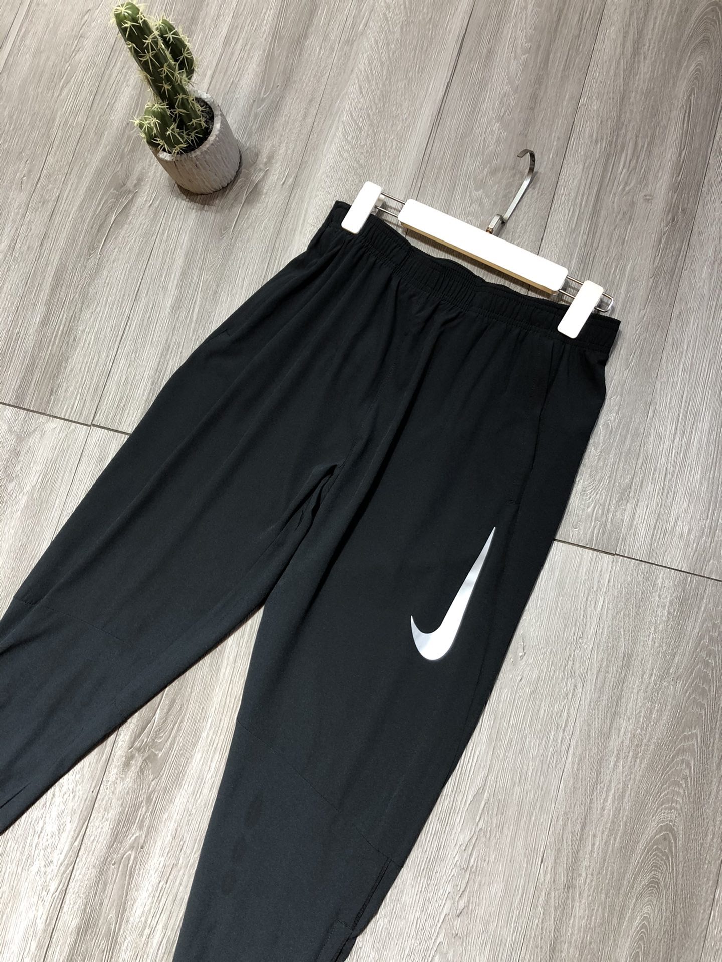 This is Nike’s large swoosh logo cuffed casual pants, with solid black as the base color and eye-catching white large swoosh logo, presenting a distinctive and eye-catching style. Made of lightweight and breathable woven fabric, it is comfortable and suitable for spring and summer daily streetwear, commuting, light sports and other scenarios; the cuffed silhouette balances neat styling and movement freedom, the elastic waistband + drawstring design allows free waist adjustment, and the side pockets meet the storage needs of small items. Whether paired with a T-shirt for a casual look or combined with a sports top for light sports scenarios, it is a practical choice for fashion players and daily styling enthusiasts.