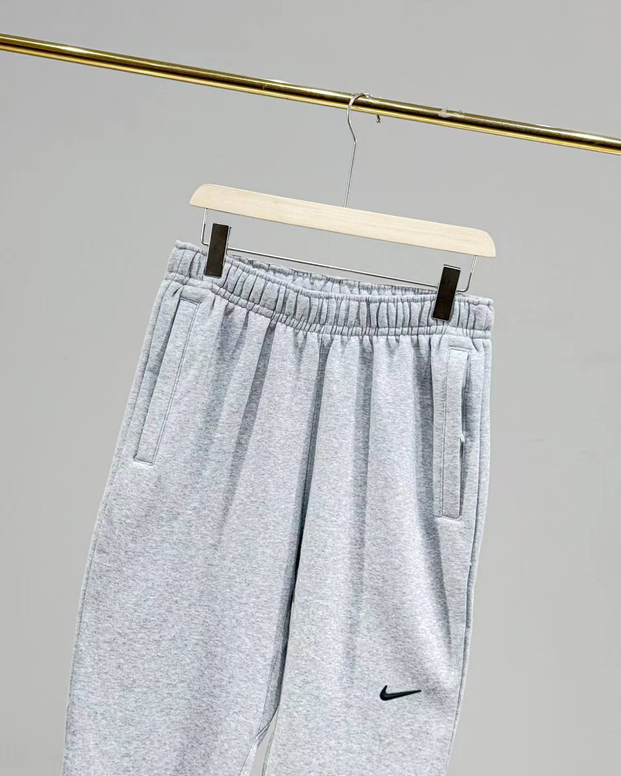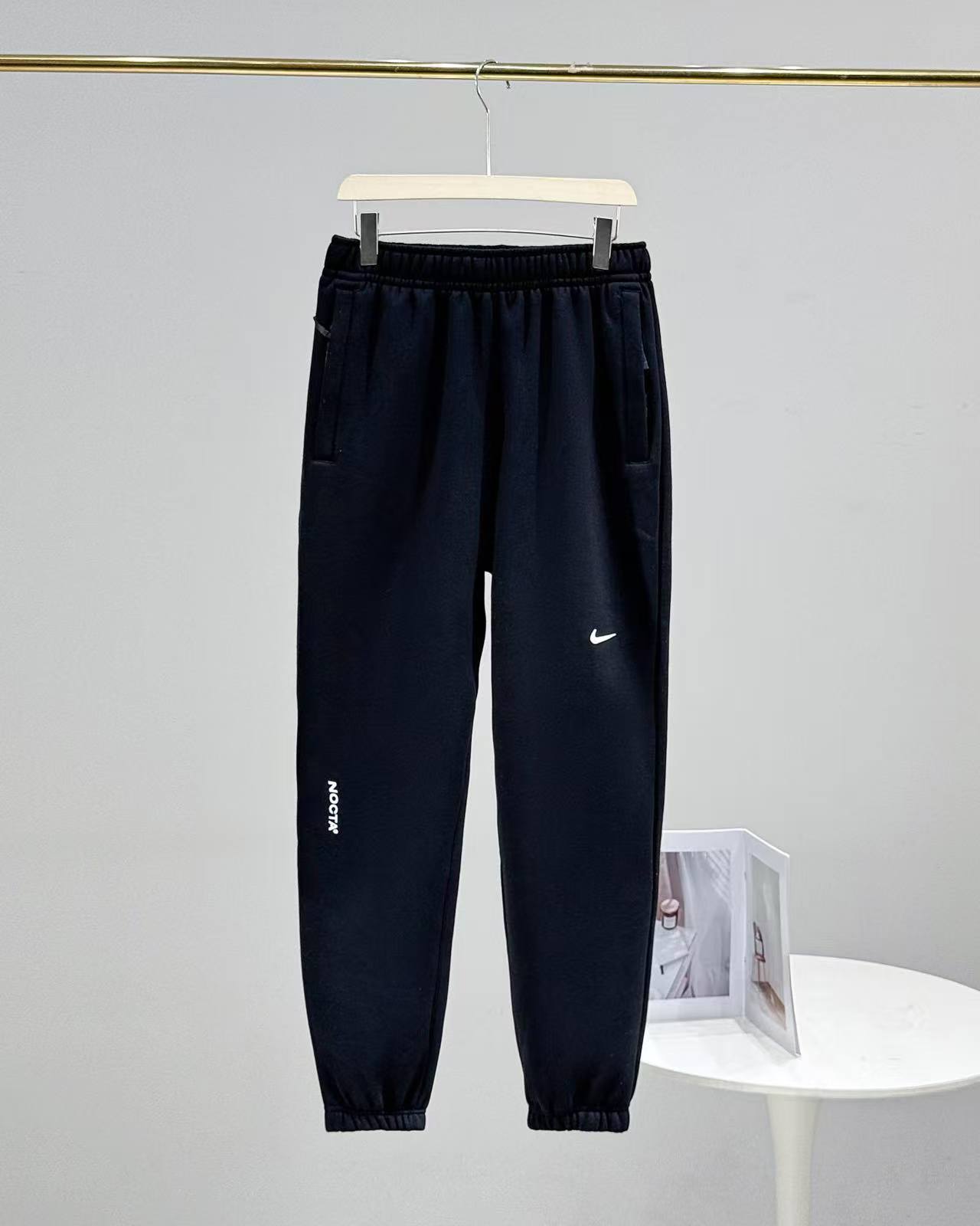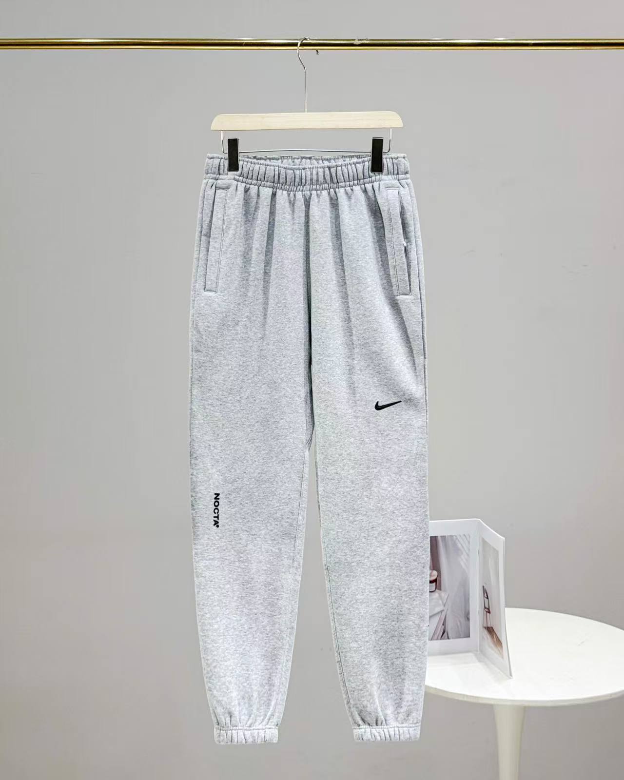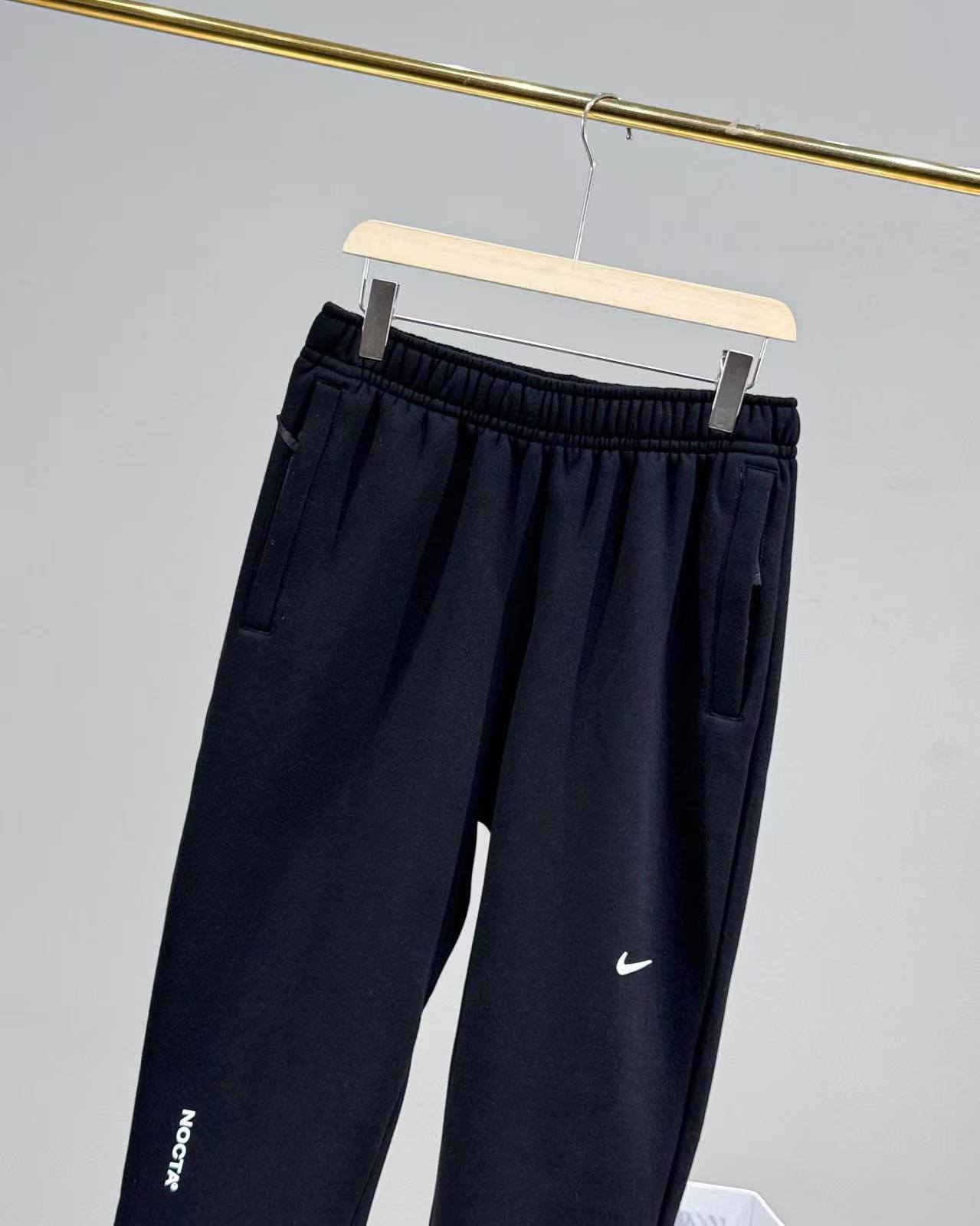 This is the cuffed jogger pants from the Nike NOCTA collaborative collection, available in light gray and solid black. The black version features NOCTA co-branded logos, while the gray version adopts a subtle swoosh design, both continuing the collection’s minimalist fashion style; the cuffed silhouette combines neat styling and wearing comfort, the elastic waistband fits different body types, and the side pockets meet basic storage needs. Made of soft knit material, it is skin-friendly and breathable, suitable for daily streetwear, commuting, light leisure and other scenarios, serving as a practical bottom for fashion players to create a minimalist premium style.
