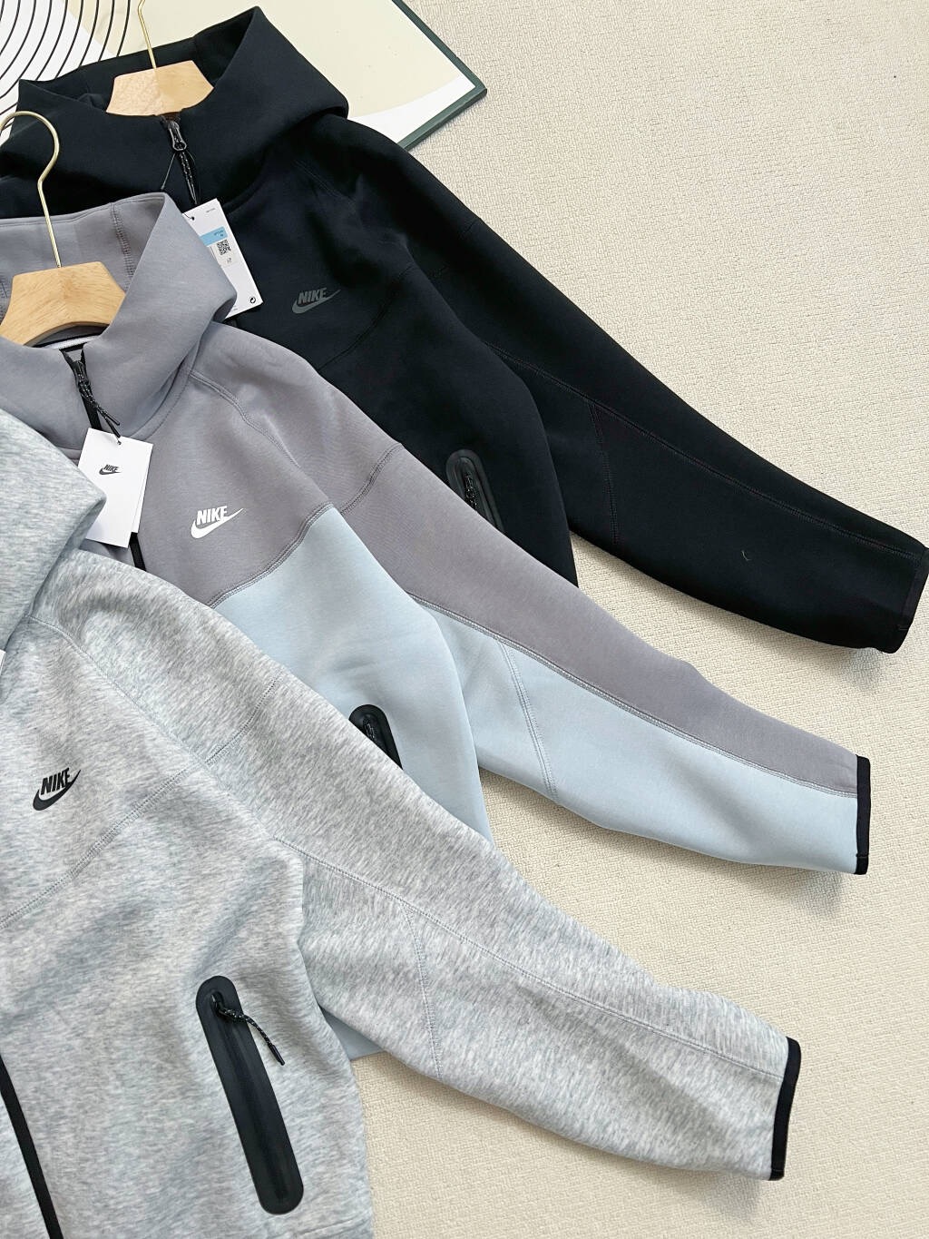 这是耐克微妙的swoosh半拉链套装,包括连帽运动衫和慢跑裤。该套装以相同颜色的微妙swoosh徽标作为设计亮点,低调的简约风格结合了品牌认知度和高级质感; 运动衫采用半拉链连帽轮廓,易于穿/脱,灵活调节领口; 慢跑裤配有侧拉链口袋,安全实用,便于存放。由柔软的针织材料制成 (有些版本为羊毛衬里以保暖),亲肤透气,适合日常通勤,家庭休闲,轻型运动等场景。匹配集节省了样式设计的工作量,使其成为创建简约高级风格的实用选择。