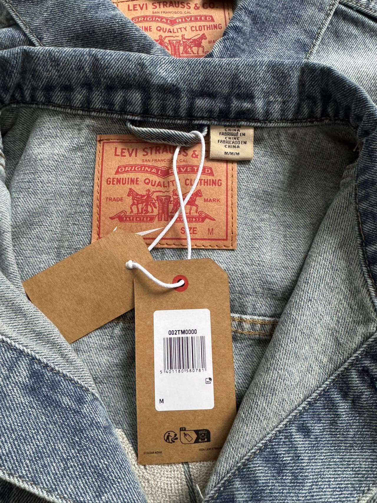 - 复古水洗饰面: 破旧的蓝色牛仔面料,具有自然褪色的纹理,营造出复古的街头氛围;